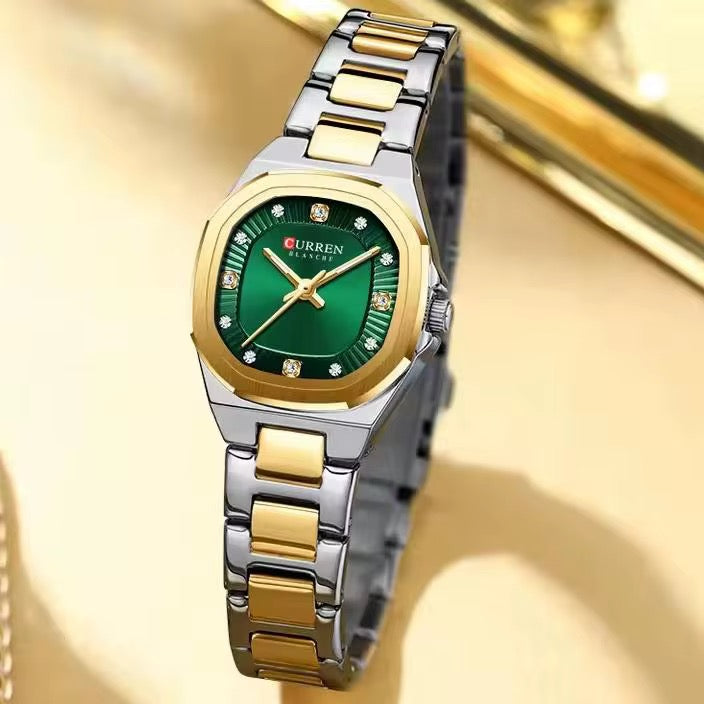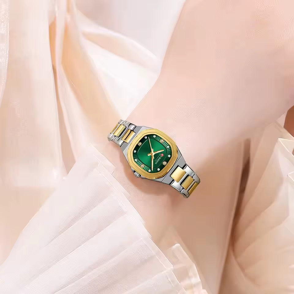 Son bracelet en acier inoxydable doré assure à la fois solidité, confort et durabilité, tandis que son cadran élégant avec des index fins offre une lecture facile de l’heure tout en ajoutant une finition haut de gamme.
